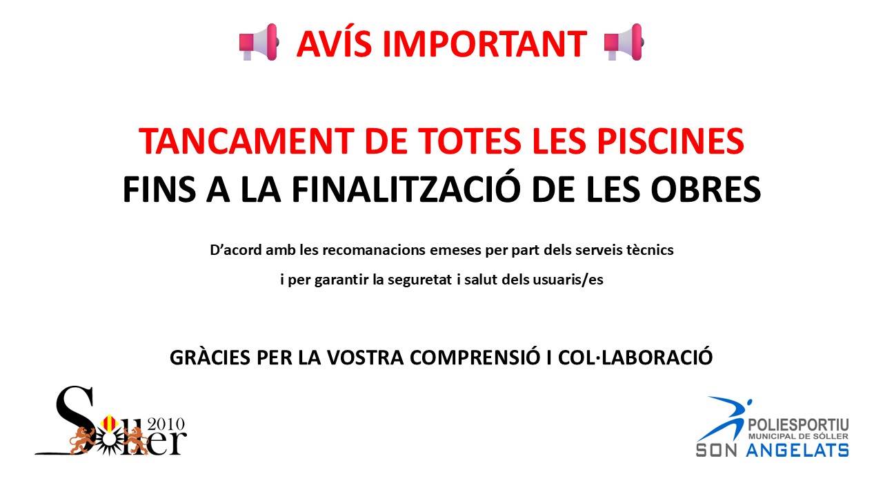 TANCAMENT DE TOTES LES PISCINES FINS A LA FINALITZACIÓ DE LES OBRES